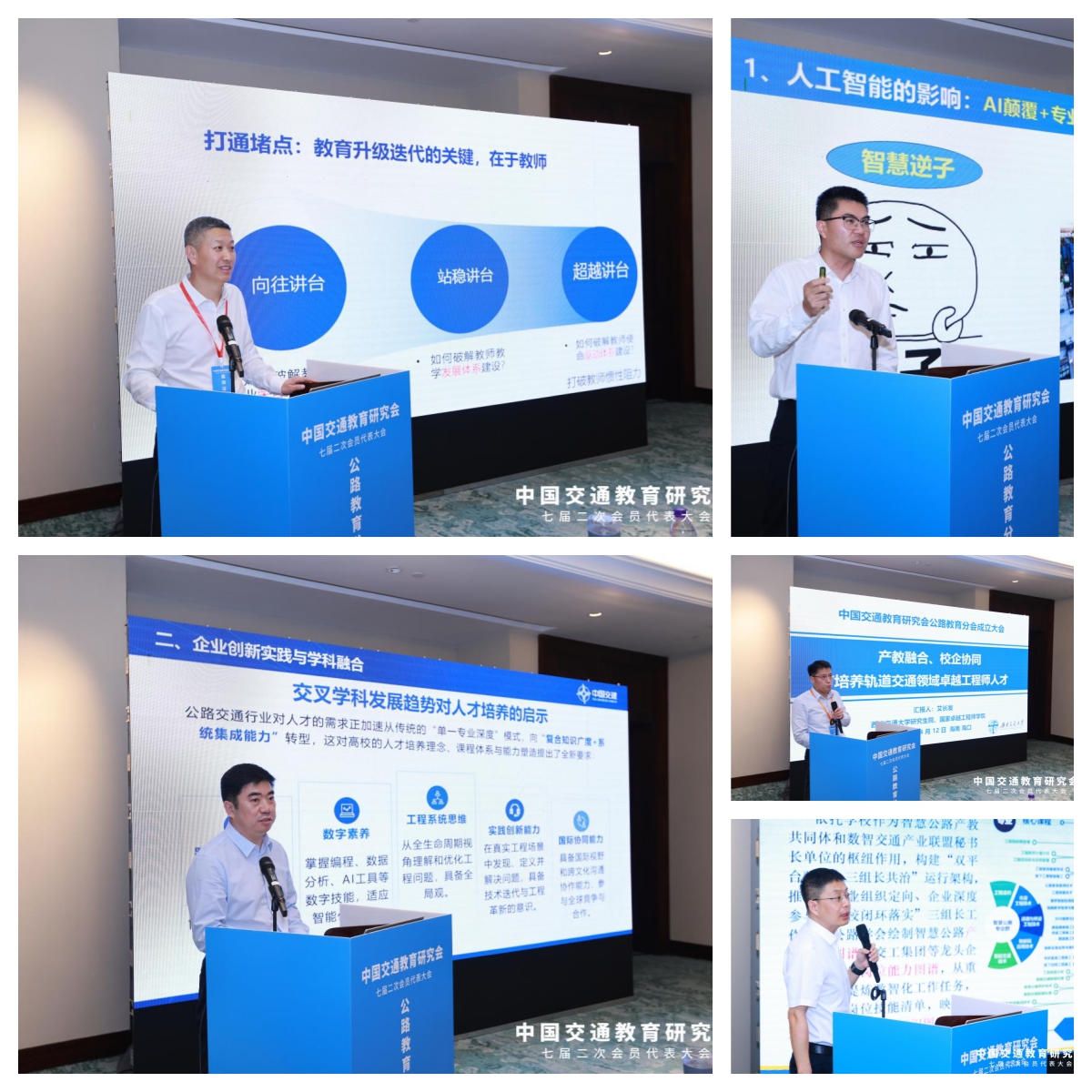 院长汪海年代表公路教育分会理事会倡议发起成立公路交通运输特色高校联盟,旨在破除校际壁垒、整合优质资源、深化协同发展,为交通强国建设筑牢人才根基、提供智力支撑。