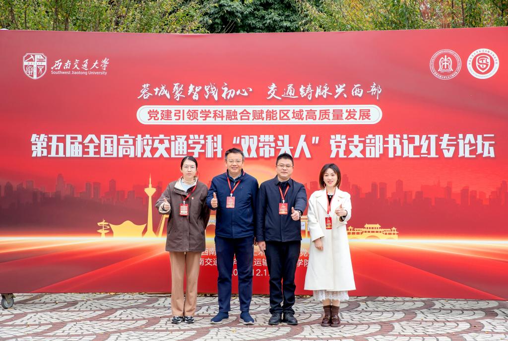 12月12日-12月14日,第五届全国高校交通学科“双带头人”教师党支部书记红专论坛在成都西南交通大学召开。本次论坛以“蓉城聚智践初心,交通铸脉兴西部——党建引领学科融合赋能区域高质量发展”为主题,旨在深入学习贯彻习近平新时代中国特色社会主义思想和党的二十大四中全会精神,落实新时代党的建设总要求和新时代党的组织路线,进一步加强高校交通学科“双带头人”教师党支部书记模式建设,推动党建工作与学科建设、人才培养、科学研究等中心工作同频共振、互促共进。欲漫涩